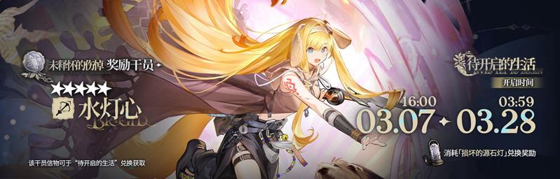 首先,全新SideStory系列主题活动「挽歌燃烧殆尽」将在3月7日至3月28日期间开启。活动分为两个阶段,第二阶段将在一周后解锁。参与活动的玩家将有机会解锁新五星狙击干员水灯心,并获得华法琳的新皮肤,为你的队伍增添新的力量和装扮。