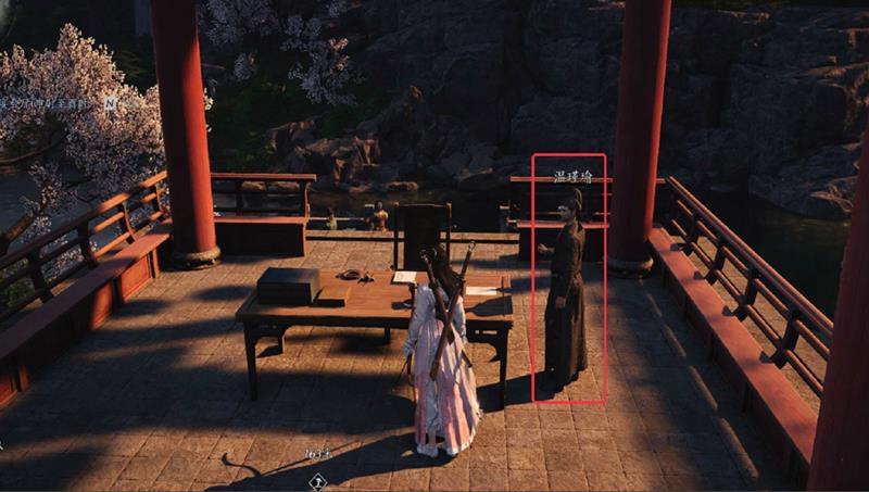 2、根据线索,到一亭子处找到温瑾瑜,与温瑾瑜对话获得线索;