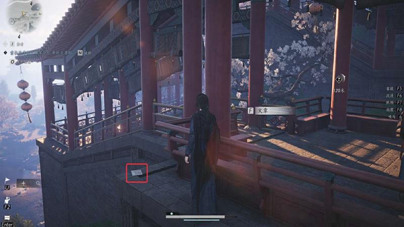 2、前往登山长廊,在长廊边缘处找到遗失的文章。