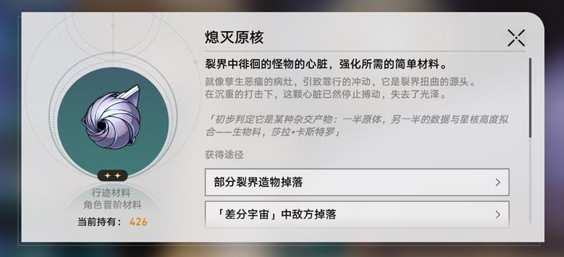 崩坏星穹铁道材料熄灭原核介绍