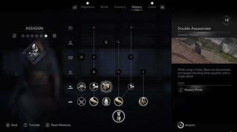 弥助可以通过武士训练,解锁战斗中的多项能力,例如在连击中切换武器。对于奈绪江来说,忍者技能树或刺客技能树可以解锁隐身强化,以及暗杀敌人的新方法等。