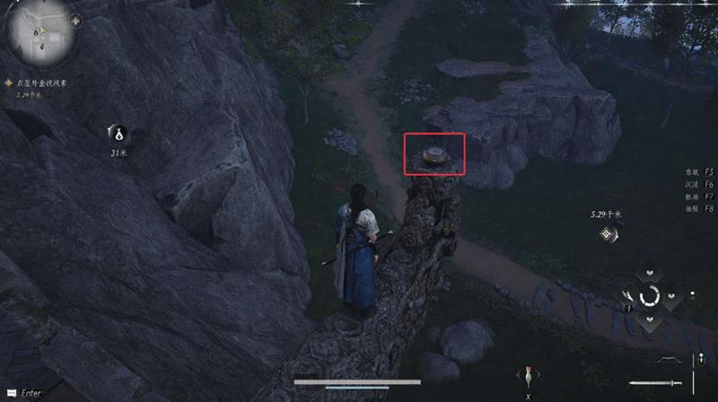 2、根据线索,在建隆观右侧找到香炉,与香炉交互获得线索;