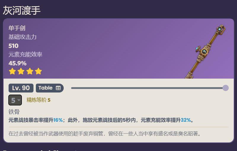 提供元素战技暴击率加成和高额元素充能效率加成。可提升角色伤害输出,缓解角色充能压力。