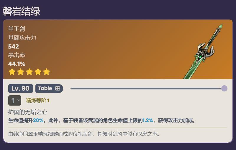 提供生命值加成,提升角色的伤害输出能力和辅助能力。特效可提供额外元素能量,降低自身充能压力。