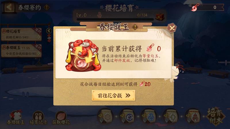 玩家通过每日花合战任务获得“春樱暖玉”,在活动结束后,这些暖玉将按照相同比例转化为勾玉。