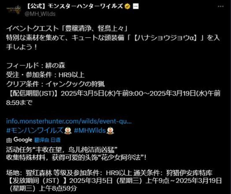 卡普空今日宣布,《怪物猎人:荒野》将推出首次活动任务,本次共有两个限时活动任务,我们来一起看看。