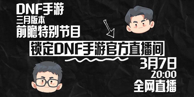 DNF手游的三月版本前瞻特别节目正式定档,将于2025年3月7日20:00举行,届时将会公布新版本的各项内容。