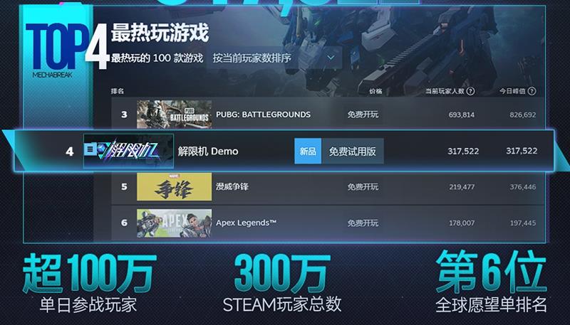 西山居旗下机甲射击游戏解限机自STEAM全球测试开启以来,硬核机甲对战吸引了全球不少玩家关注体验,日前官方发文表示解限机STEAM玩家总数突破300万。我们来一起看看。