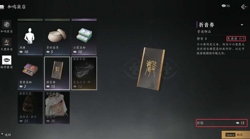 1、在地华商店可花费 15地华购买1张;