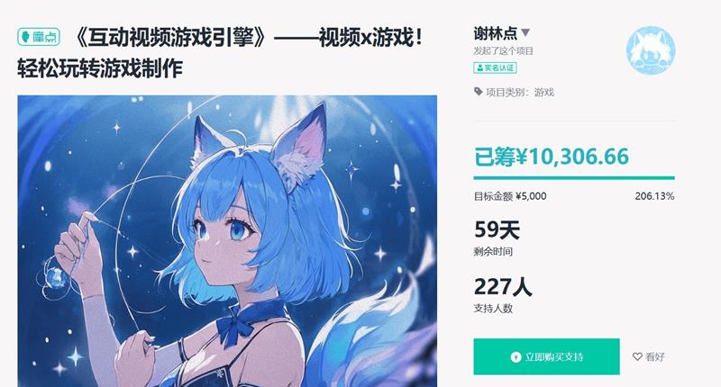 《互动视频游戏引擎》的开发团队在B站发布了实机演示视频,展示了该工具的实用性和创新性。从众筹平台的数据显示,该项目在单一平台已筹集超过一万元资金,吸引了227名支持者。这一成果不仅体现了项目的潜力,也反映了玩家对其开发理念的认可。
