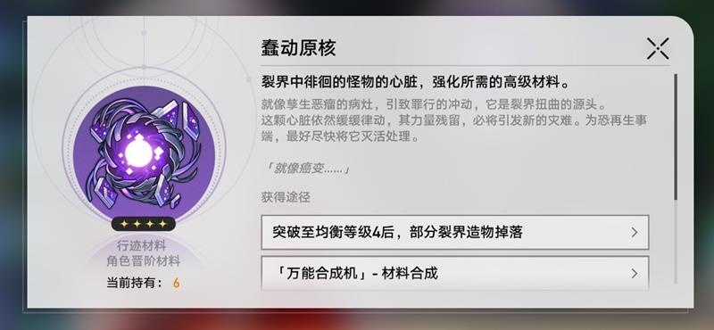 崩坏星穹铁道的蠢动原核是一种角色养成材料,很多开拓者想要知道崩坏星穹铁道的蠢动原核有哪些用途,我们一起来看看吧。