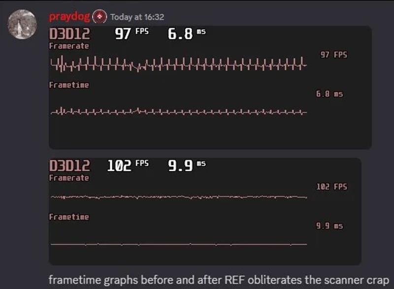 Praydog为了证明新版REFramework的成效,分享了相关的测试截图,从截图中可以清晰地看到,在使用该框架后,游戏的帧时间得到了显著的优化,帧率表现更加稳定流畅。