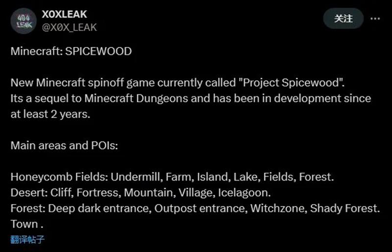 《我的世界:地下城》续作开发消息曝光,官方代号“Spicewood”,目前已进入开发阶段两年有余。