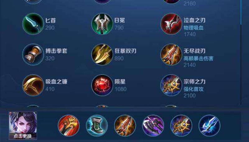 前期以巡守利斧和抵抗之靴为核心,快速提升发育速度和切入能力。到了中期暗影战斧和无尽战刃是关键装备,能大幅提升阿轲的爆发伤害。后期阶段宗师之力和破甲弓进一步提升输出能力,名刀·司命增加生存能力。可根据对方阵容选择。稳妥玩家建议补个名刀或复活甲。