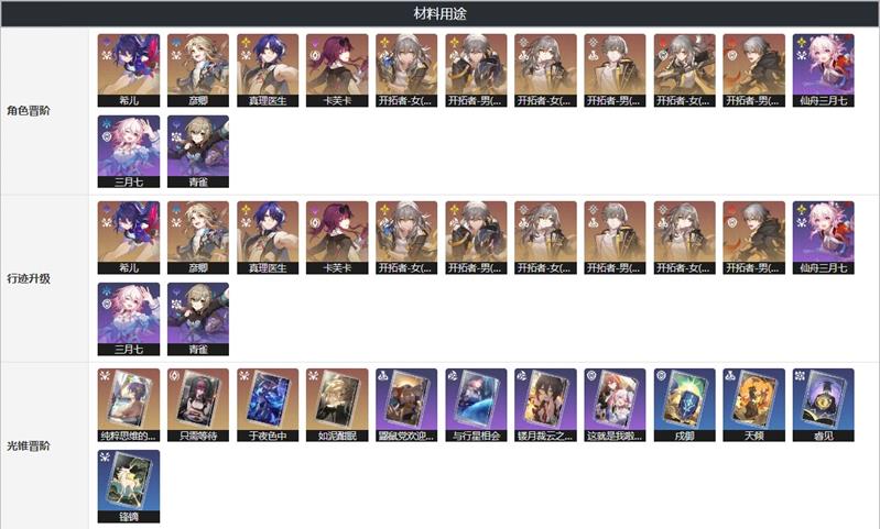 篡改的野心可以用于角色晋阶和行迹升级
