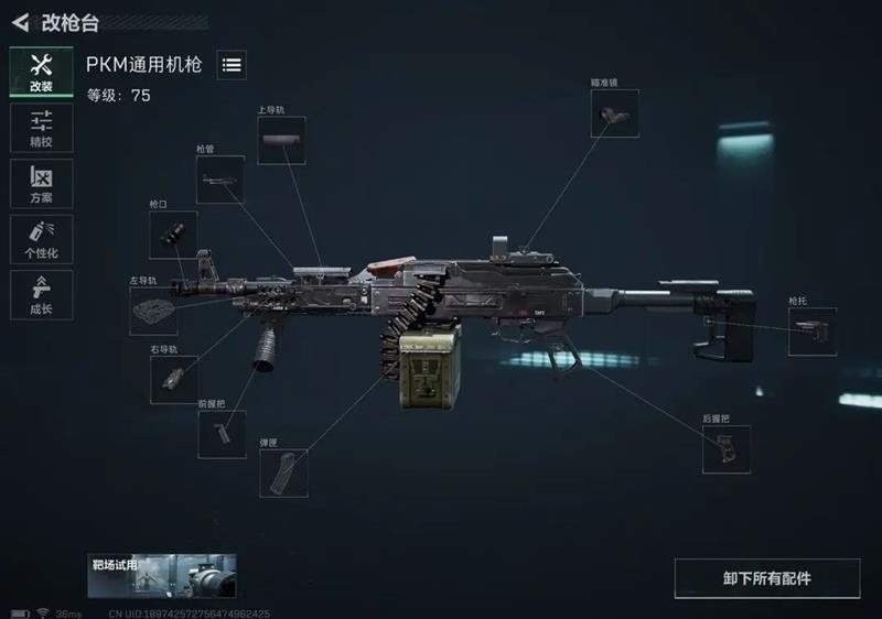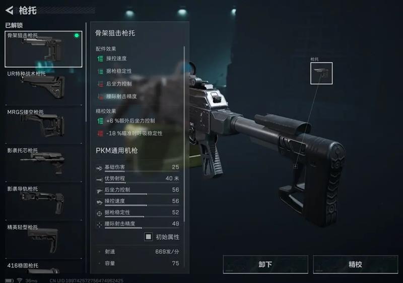 首先,核心配件是PKM壕战短枪管,它能大幅提升操控速度,满足灵活性要求。操控速度提高意味着更快的开镜速度,在火力密集且地形狭小的据点内,能更好地输出伤害。同时,腰射精度的提升降低了近距离对枪的难度,利用掩体和灵活走位,可在据点内打出爆发伤害,快速清除点内兵力。在精校方面,建议根据个人习惯提高配重和长度,以换取更好的优势射程和握枪稳定性,提高开镜下的操作体验。