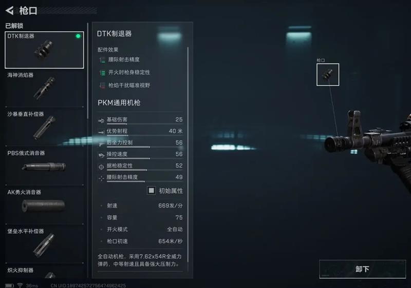 枪口选择DTK制退器,其增加后坐力控制的属性是关键因素。至于剩余的配件,贴片增益微乎其微,干员们可自行装配。此外,可增加镭射,利用战术瞄准提高近距离作战能力。