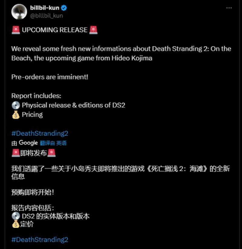《死亡搁浅2:沙滩之上》的实体版定价信息近日被知名爆料人billbil-kun曝光,引发了玩家群体的广泛关注。根据爆料内容,该游戏将推出标准版和典藏版两种版本。