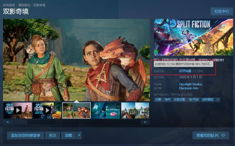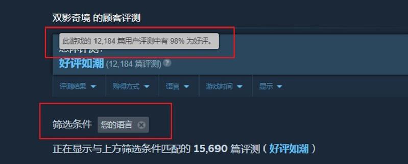 《双影奇境》自2025年3月7日发售以来,凭借出色的游戏品质收获了玩家的广泛好评。在Steam平台上,该游戏的评价达到了“好评如潮”,好评率高达98%。在简体中文区,这一数字同样令人瞩目,7031篇玩家测评中好评率也达到了98%。