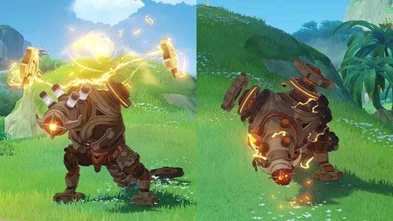 上半部分为四只遗迹龙兽,分两波刷新。龙兽的血量较高(单只145万),但攻击模式较为单一,属于“木桩”群怪。旅行者可以通过“等腰三角形”站位拉怪,统一其动作,防止后撤步聚怪失败。龙兽蓄力时会增加对应元素抗性,需及时打断其蓄力。如果不慎增加抗性,后续打断蓄力也可清除效果。