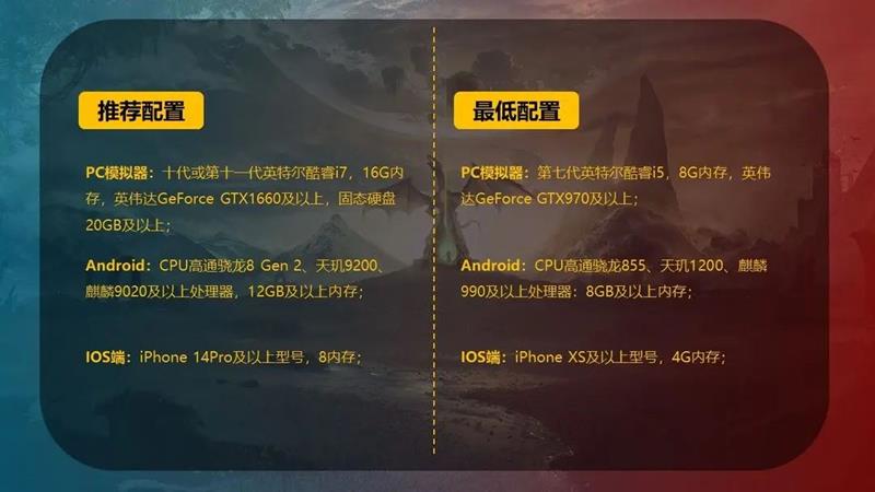 最低配置:CPU高通骁龙855、天玑1200、麒麟990及以上处理器,8GB及以上内存。