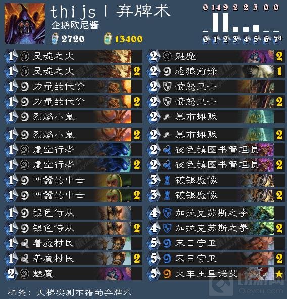卡组介绍:爸爸要我们玩弃牌思路,那我们就玩吧,这套目前在天梯实战后效果还行,走得超快攻路线。