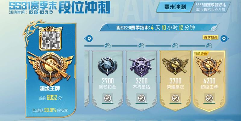 SS31赛季将于3月15日01:00结束。结束之前您还可以继续冲击SS31赛季的更高段位,并赢得更多的赛季奖励。SS31赛季结束后,会进行赛季数据的清理和结算,预计时间约为6小时。清理结算完成后将开启全新的SS32赛季。