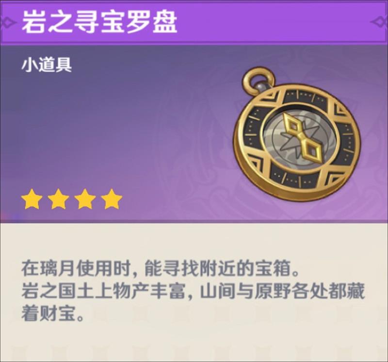 在璃月使用时,能寻找附件的宝箱。岩之国土上物产丰富,山间与原野各处都藏着财宝。