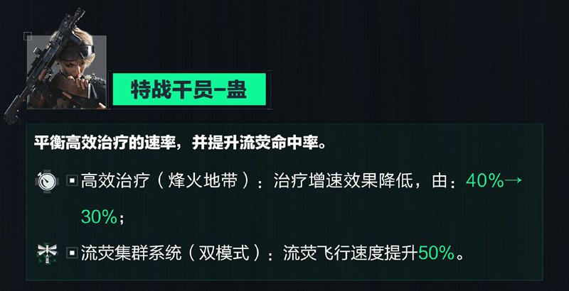 - 流萤集群系统(双模式):流萤飞行速度增加了50%,这意味着蛊现在可以更快地部署流萤,提高命中率并增强其控制战场的能力。