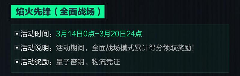 活动说明: 期间,全面战场模式累计得分领取奖励