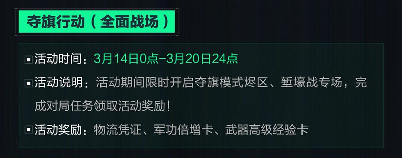 活动奖励: 物流凭证、军功倍增卡、武器高级经验卡