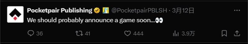 尽管Pocketpair Publishing尚未正式公布首批游戏,但从其官方X账号发布的消息来看,游戏公布指日可待。该账号发文称“我们或许该尽快公布一款游戏了”,并配上了一双注视的眼睛表情。