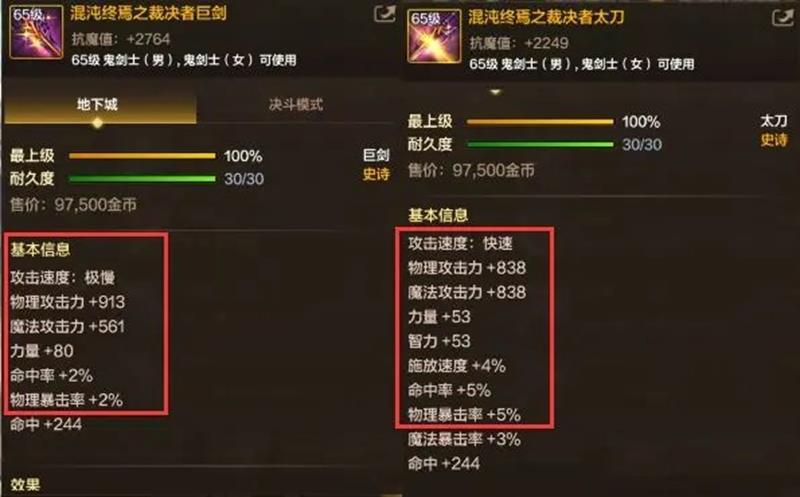 通常情况下,大家都推荐选择巨剑,因为巨剑的基础属性要优于太刀,它比太刀高出75点物攻和27点力量,在相同的装备搭配下,通过计算器计算,巨剑的伤害比太刀高出3%,此外巨剑还比太刀多出1000多点抗魔,颜值也更胜一筹。