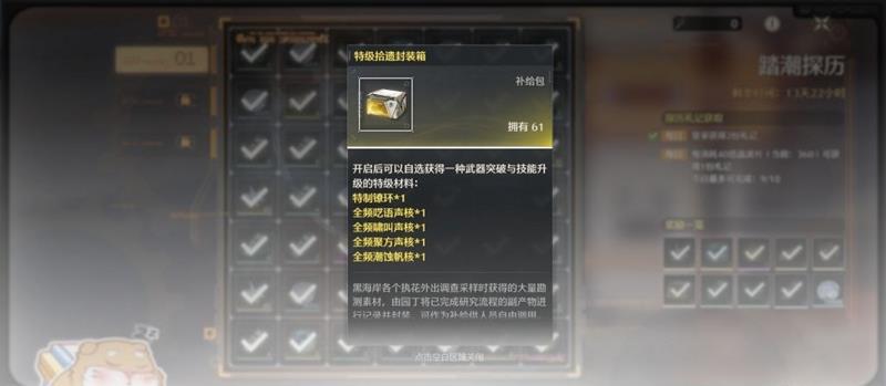 这两种箱子的价值存在明显差异,“凝素特级物资箱”包含的是12个自选金色技能材料,需要消耗体力才能获取,而“特级拾遗封装箱”则是12个自选金色怪物掉落材料,无需消耗体力。