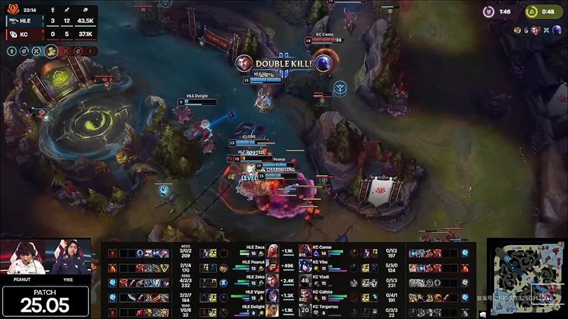 29分钟,HLE先手击败KC三人,HLE顺势推平基地,拿下胜利。