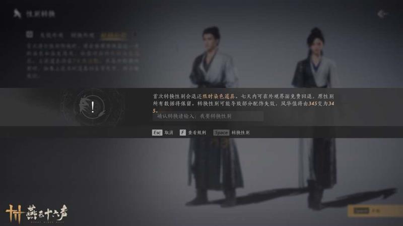 为了让游侠们的阴阳易形也能进退自如,首次转换性别后的7天内,可以通过衣柜-更多选项-性别转换中免费重置转换性别效果,重置转换性别不会退还道具“阴阳易形丹”。