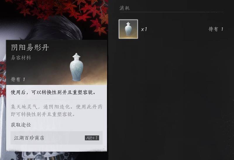 游侠若想实现阴阳易形、性别转换,首先需要使用阴阳易形丹。