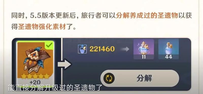《原神》5.5版本即将迎来圣遗物分解方案的重大改进。根据最新消息,官方在近期的座谈会中宣布了针对圣遗物分解机制的优化调整。此次改动的核心在于强化过的圣遗物在分解时将有机会获得经验道具,这一改动将为旅行者们在资源管理上提供更多的灵活性。