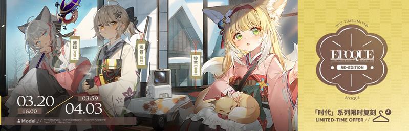 此外,采购中心将限时售卖多种组合包,包括“定向甄选寻访组合包”“促融共竞数据套组”“促融共竞资金箱”以及“促融共竞数据包”,售卖时间同样为3月20日16时至4月10日3时59分。而“时代”系列时装也将限时复刻上架,活动时间为3月20日16时至4月3日3时59分,雪霁 - 铃兰、月宵 - 薄绿、别枝 - 稀音等干员时装将在时装商店限时贩售。