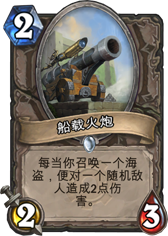 4、船载火炮:贼是一个能两费补刀两次的职业,所以火炮的23身材对贼来说是再合适不过了,其次当前版本的绣水海盗和畸变船长都是质量海盗,再加上本来就很适合贼的南海船工和血帆海盗,火炮的打2特效更容易触发了,只要能补中一发那是赚得飞起,就算崩到脸上也是稳赚不赔,所以船载火炮抓位上升