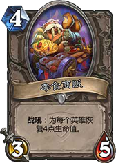 2、零食商贩:435屁股够大,配合黑铁残阳之类buff牌站得比匪贼稳,重点在于他的特效奶脸4血对贼来说很关键。有时候优势站场了给对面奶4很闹心?那不上不就得了呗!或者3攻5血的商贩已经很能站了,那踢一下不就回本儿了吗?给自己奶的4血就是白赚的了。