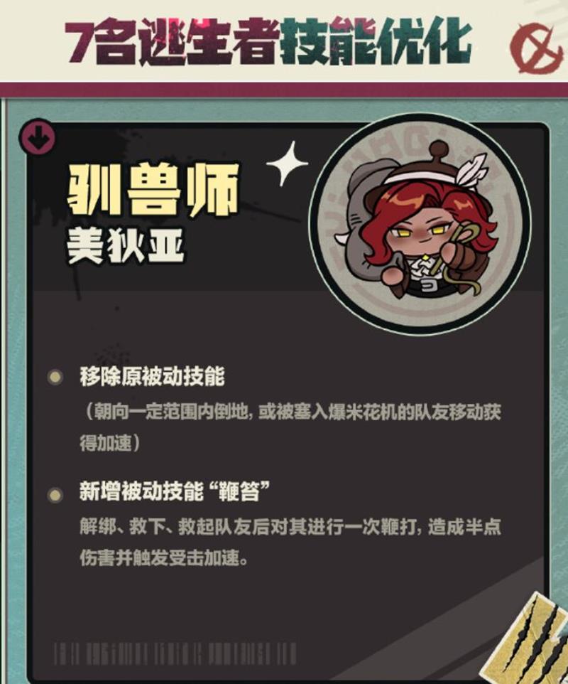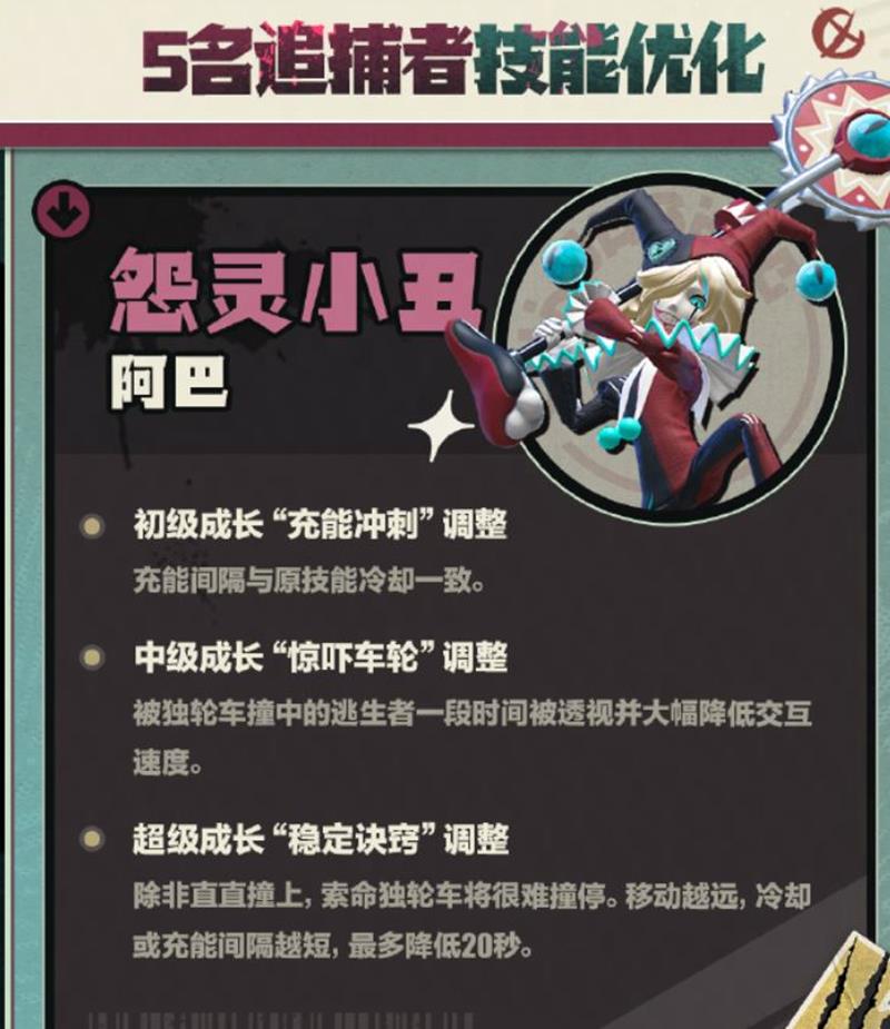 将对部分追捕者技能和成长进行了优化,让家蛋们在经典和协作模式都能更好地体验角色的特色玩法。例如,疯象默认将获得带柜移动能力;困兽在合作模式下能更容易完成变身。