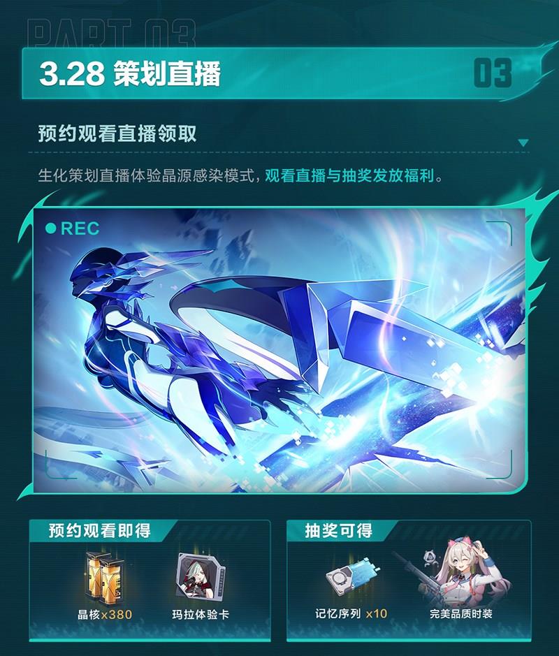 除了新赛季的丰厚福利外,卡拉彼丘还为引航者们准备了运营新启航全服福利。全服邮件,登录即领,让引航者们在游戏的过程中感受到满满的诚意和关怀。3月28日策划直播,引航者们预约观看直播即可领取生化策划直播体验晶源感染模式,观看直播与抽奖发放福利,更多惊喜等你来发现。