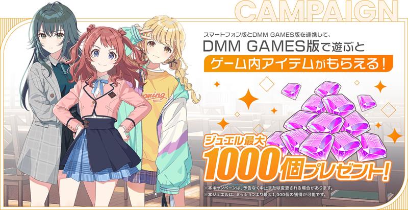 在游戏PC版上线之际《学园偶像大师》推出了数据连携功能,玩家在与手机版进行数据连携后,首次登录游戏即可获得1000个宝石,而在DMM GAMES版首次登录时,还能额外获得1500个宝石作为事前登录奖励。这些宝石可以用于游戏内抽卡。
