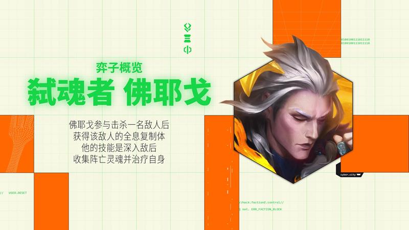 这位不穿上衣、挥舞大剑的英雄和其他人不一样的地方是他健硕的腹肌——等等,不对,是他能复制上一轮参与击杀的最强敌方弈子。复制品具备一定生命值,造成的伤害也会降低,但会配备一件推荐装备。随着佛耶戈的升级,复制品也会变得更强!