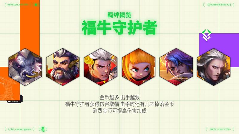 金铲铲之战s14赛博城市的羁绊福牛守护者曝光,这是一个斗士羁绊且有着全新的刷钱机制,那么金铲铲福牛守护者怎么玩?小编带来s14福牛羁绊介绍攻略。来一起看看吧。