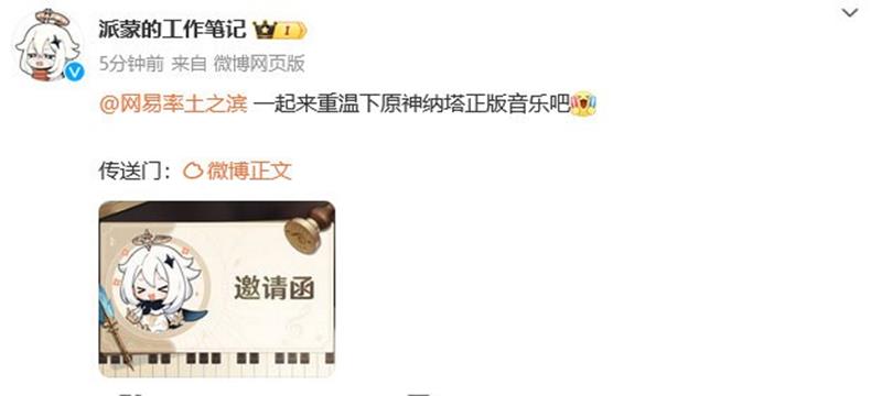 《原神》官方音乐被《率土之滨》使用,引发玩家关注。在微博上,原神的玩家互动账号@派蒙的工作笔记发布了一条消息。
