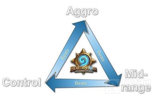其实关于卡组如何分类早已不是一个新鲜的课题,只是这个话题在国内并不很受关注。在西方炉石圈,卡组一般被归为三类:Aggro(速攻),Mid-range(中速),Control(控制)。这个分类标准非常简单易懂:你的卡组快就是速攻,慢就是控制,两边都不好归类就归到“中速”里去。这十分简单粗暴,并且泛用性极强,几乎所有卡组都可以以此归类(除了少数变速卡组以外)。