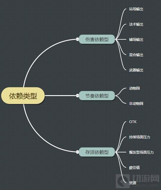 以“怎么赢”为思路进行两步分类最终的结果是:我将所有卡组分为了三大类,共12小类。第一级分类是卡组取胜所依赖的基础,第二级分类是卡组的具体取胜手段。有很多的细节不需要解释,比如“依赖存活能力、靠疲劳值取胜的卡组”,我想应该是一目了然的。我在这里主要解释以下几个点: