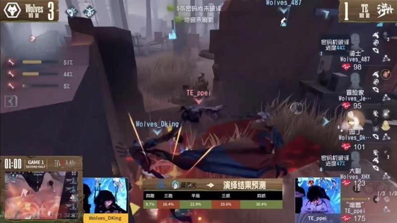 第二天的比赛中,TE战队的ppei选手在与成都Wolves战队的对决中,使用“喧嚣”角色在第一局下半局完成四抓,为队伍奠定了大优势。